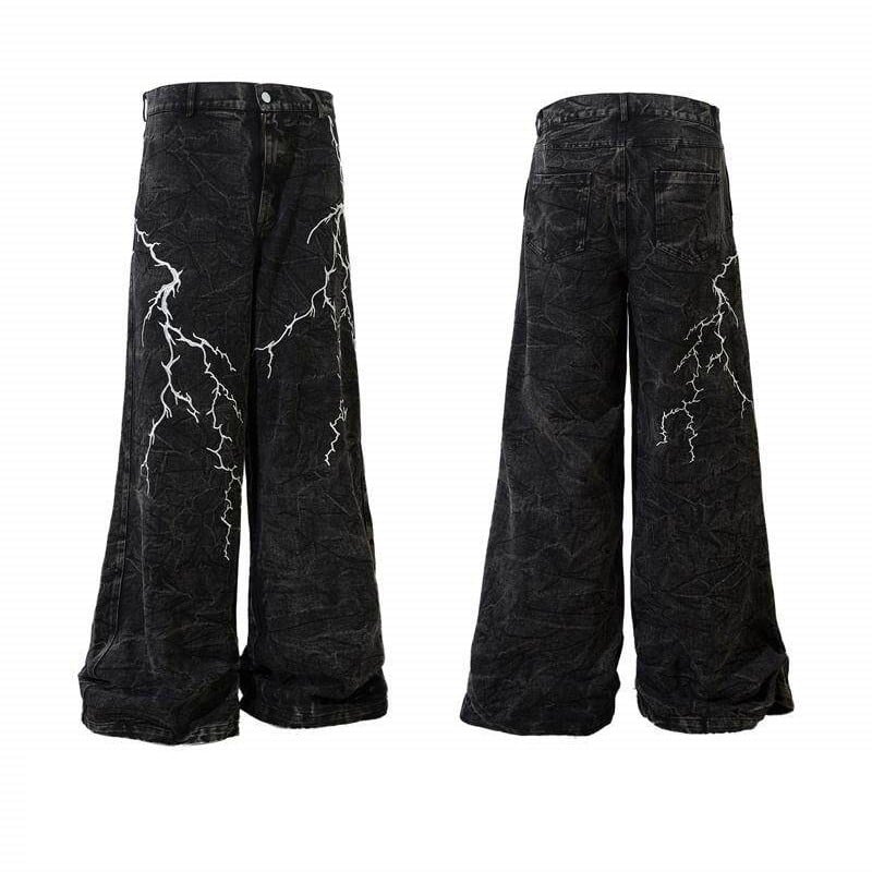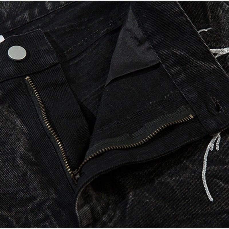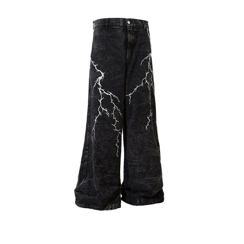 グラフィックデザインストレートワイドデニムパンツ 00041