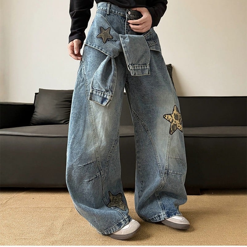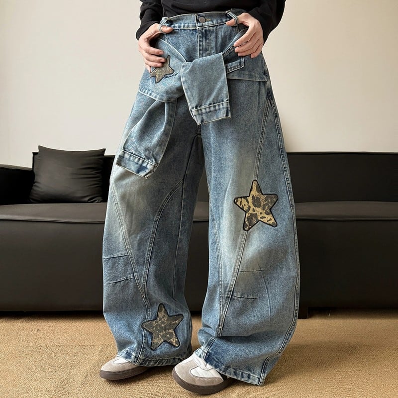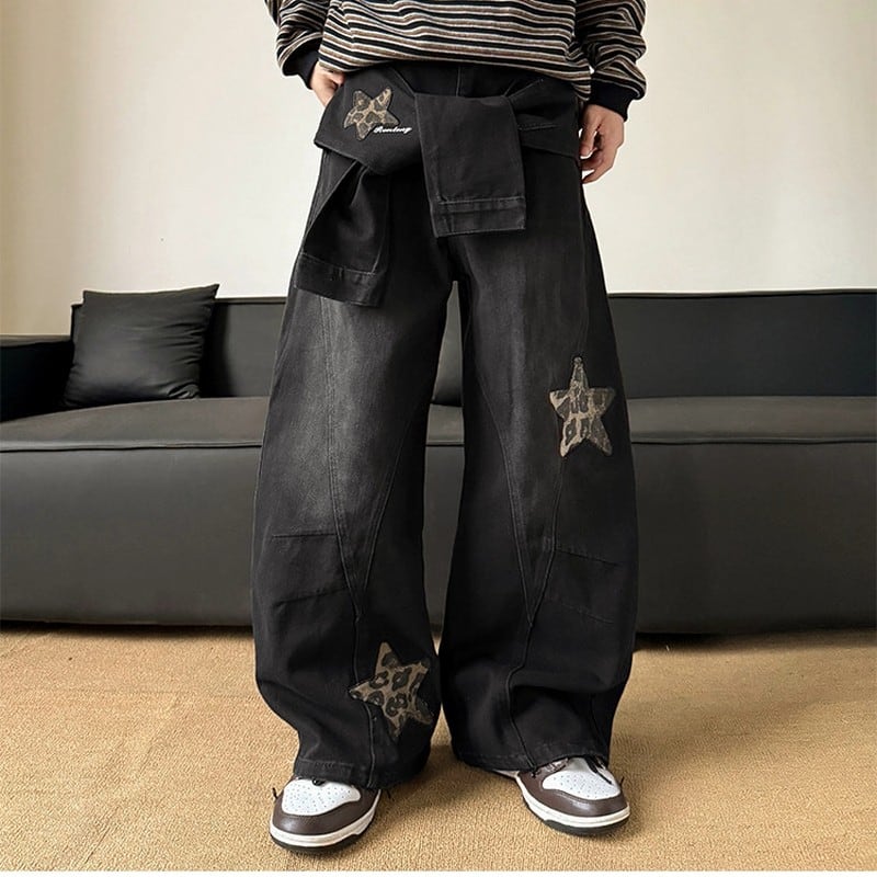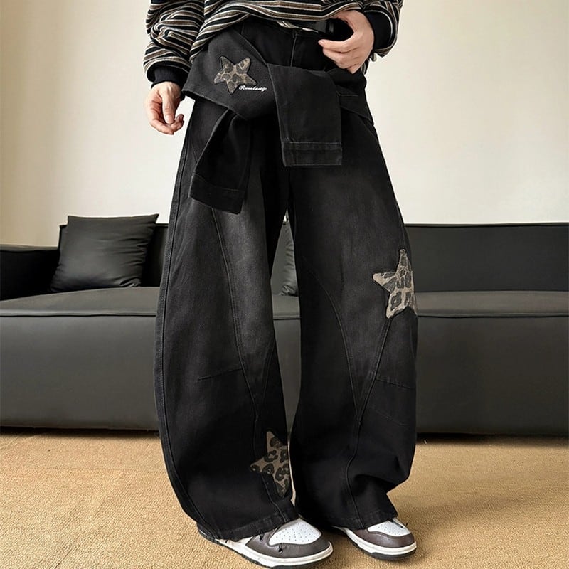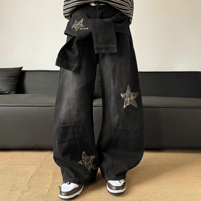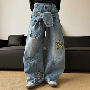 スター刺繍ワイドデニムパンツ 00074