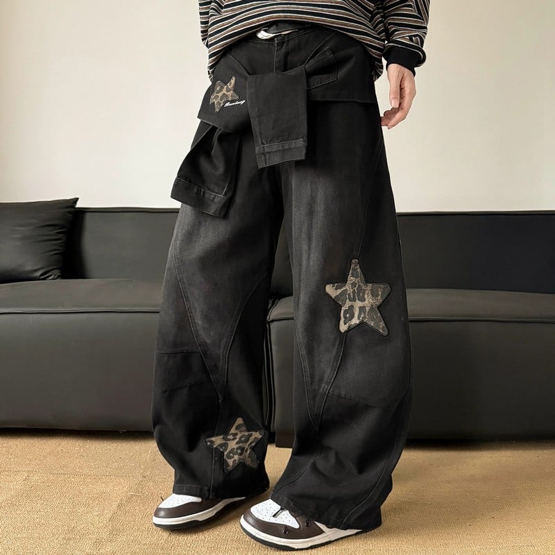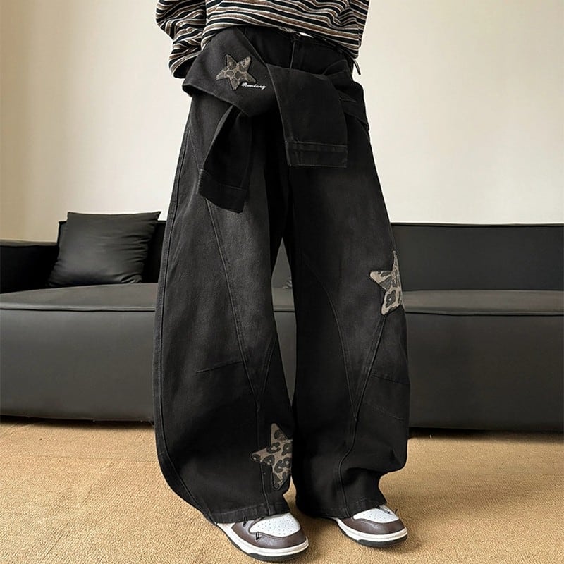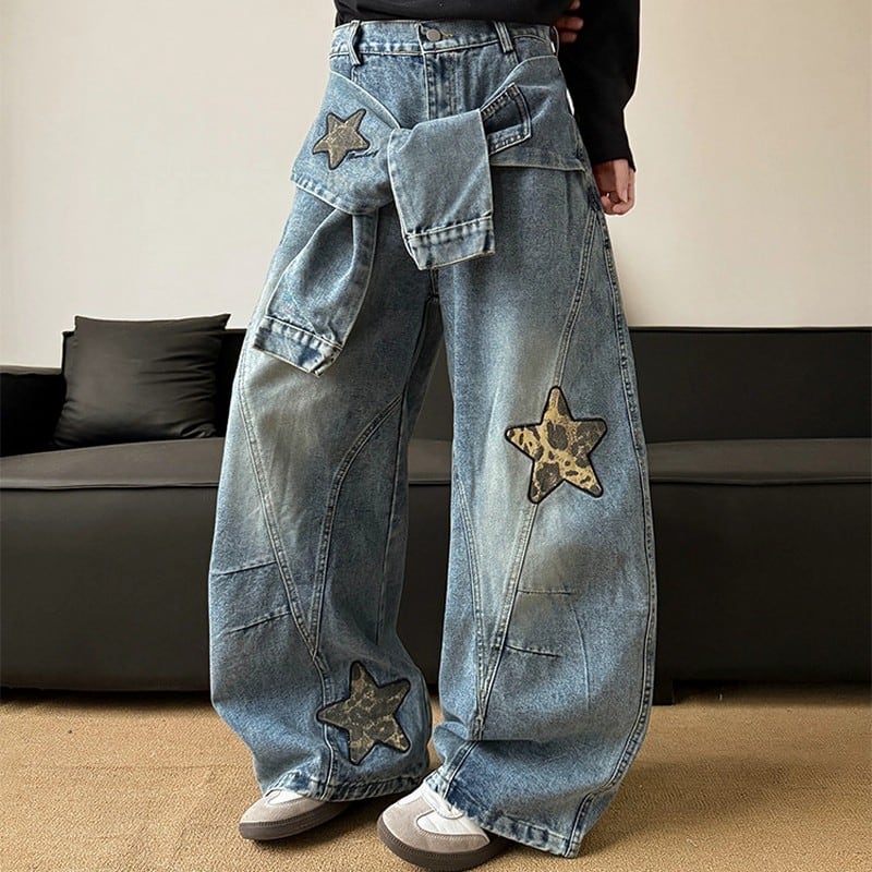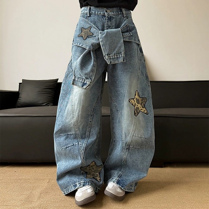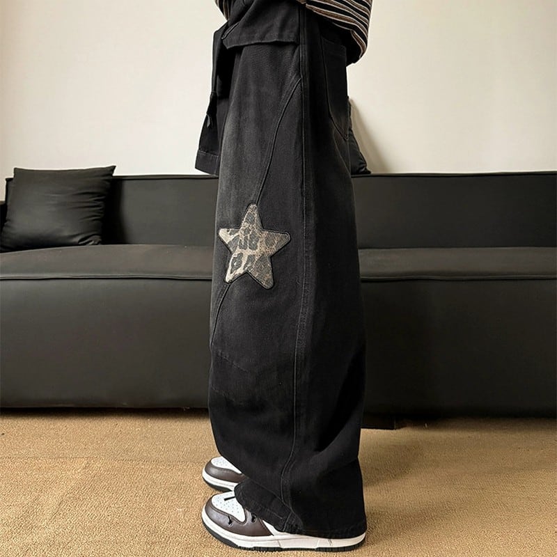 スター刺繍ワイドデニムパンツ 00074