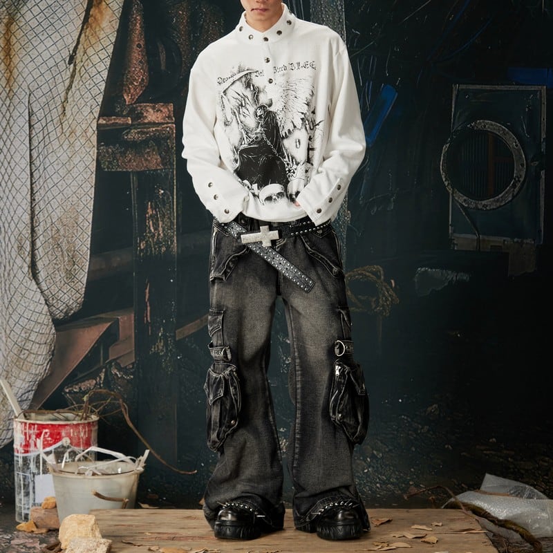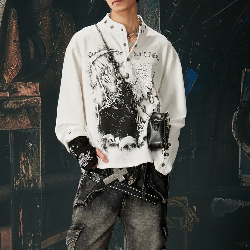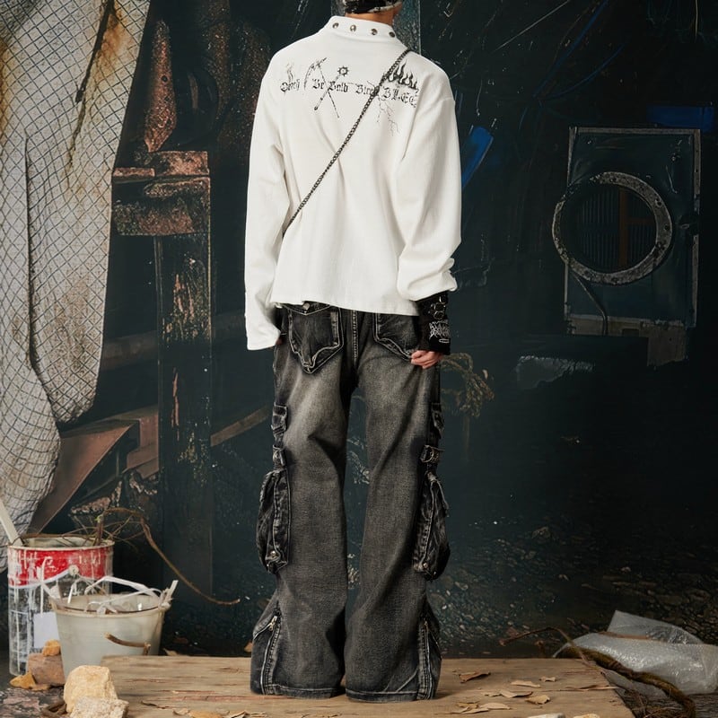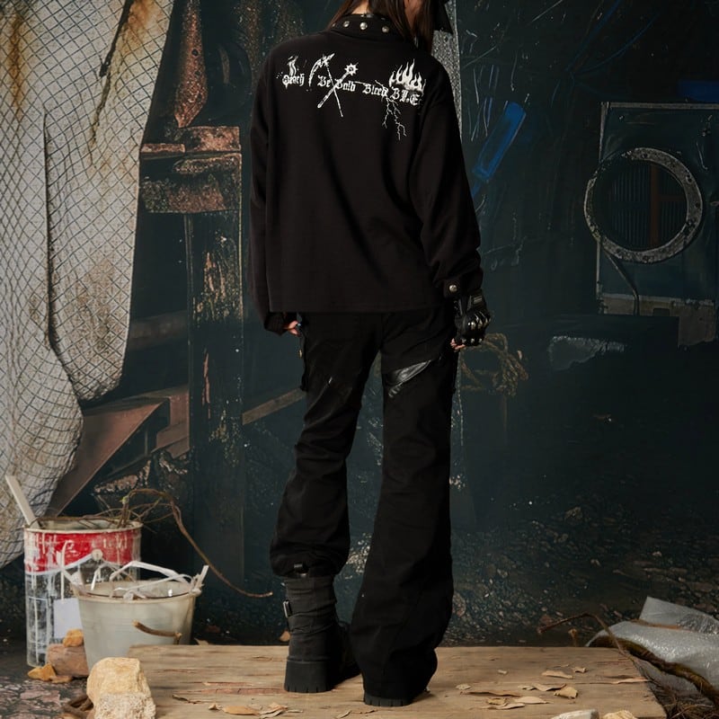 スタンドカラー メタルバックル ロングTシャツ 00135