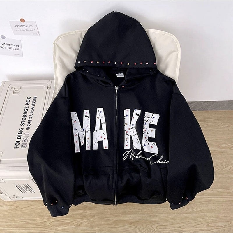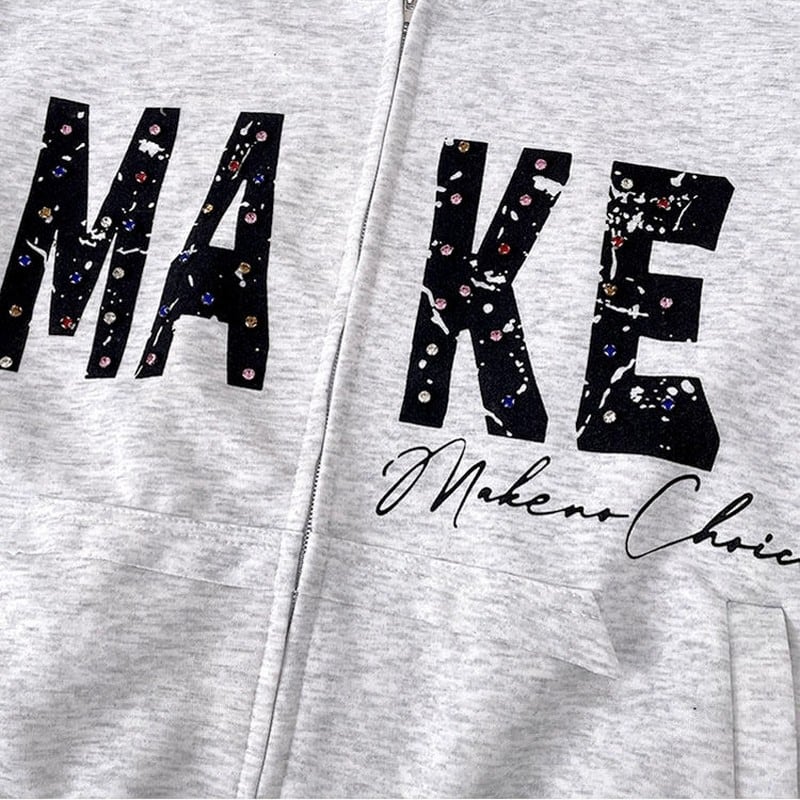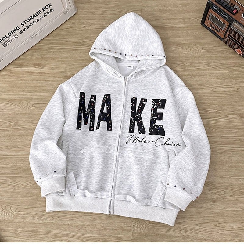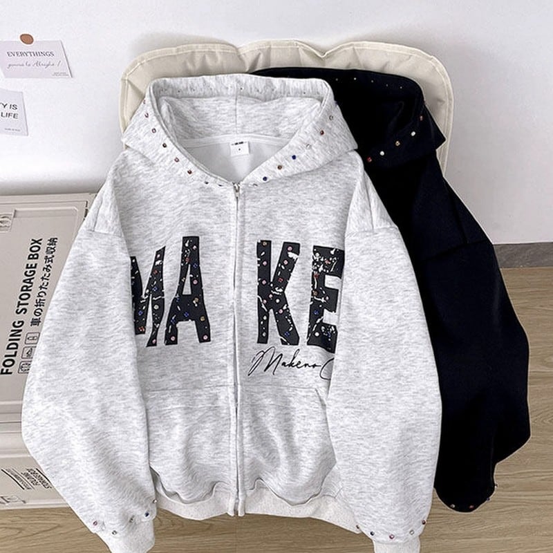 ラインストーン付ジップパーカー 00149